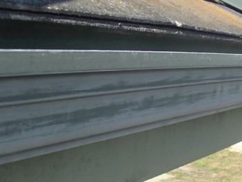 ケレン作業です 研磨剤で鉄板を研磨し整えていきます。
