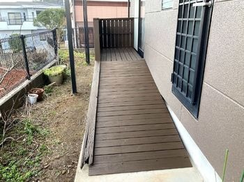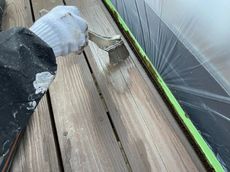 屋外木部デッキも 目荒らし後 防虫防腐塗料で2回塗りで仕上げます。