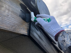 破風板は目荒らし後 防虫防腐塗料で2回塗りで仕上げます。