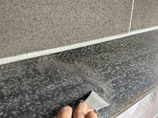 庇(鉄部)の錆による凹凸部はケレン作業から行います。