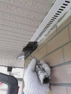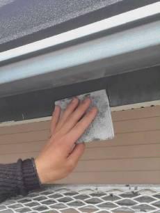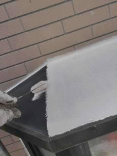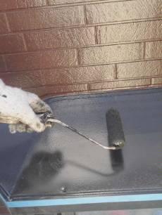 水切り板金の仕上げ塗装の様子です。小さい刷毛で付帯部の細かい所を仕上げていきます。