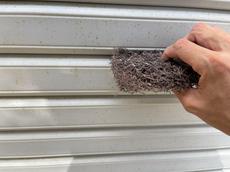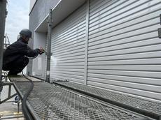 シャッターも高圧洗浄で汚れを落としていきます。