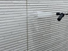 高圧洗浄です。塗料の定着に影響しますので、しっかり汚れを落とします。