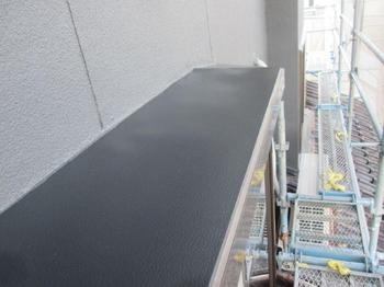 小さな錆が多数見受けられた庇(鉄部)も弱溶剤高耐久塗料で輝きを取り戻しました。