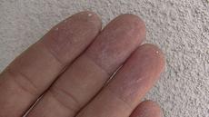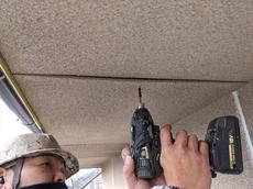浮き上がっていた軒裏ケイカル板を留め直します。