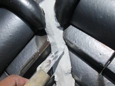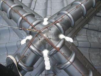 既存屋根は釉薬瓦ですが棟の取り合い部の漆喰が剥がれていました