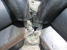 大きく入ったクラックの表面を荒らします