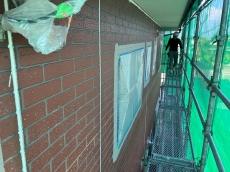洗浄・塗装前にサッシまわり付帯部は養生します。