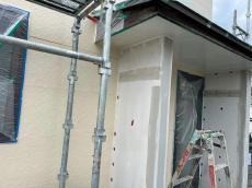 外壁玄関部分の 下塗りの様子です。