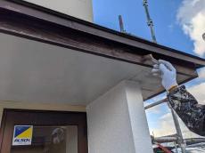玄関の軒天も塗膜が剥げて、痛みが出ていました。