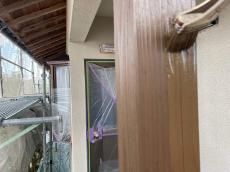 外壁塗装、下塗りの様子。下塗りをしっかり行わないと上塗りが長持ちしないので丁寧に仕上げます。