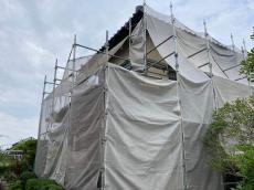 足場を組みます。
