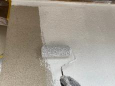 外壁はゆず肌仕上げで塗装していきます。下塗りの様子です。