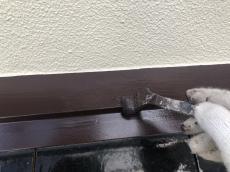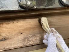 付帯部分の補修です。まずペーパーをかけて下地処理をします。