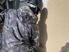 下塗りでゆず肌に仕上げ しっかりと膜厚が確保されたた外壁に上塗りを行っていきます