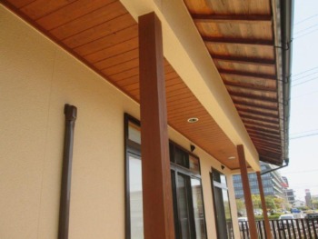 軒裏化粧板の木部も塗装で輝きを取り戻しました