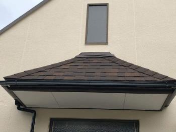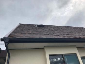 既存の屋根材の上に防水シートを張り、その上からシングルオークリッジを取付けました。