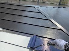 金属屋根は、下塗り材塗布後、 中塗り・上塗りをおこないました。