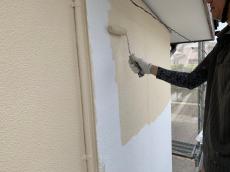 外壁は、下地処理・下塗り材塗布後、中塗り・上塗りをおこないました。