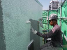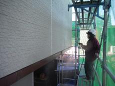 外壁を下塗り材で塗布 上塗り材の密着を高める作業です