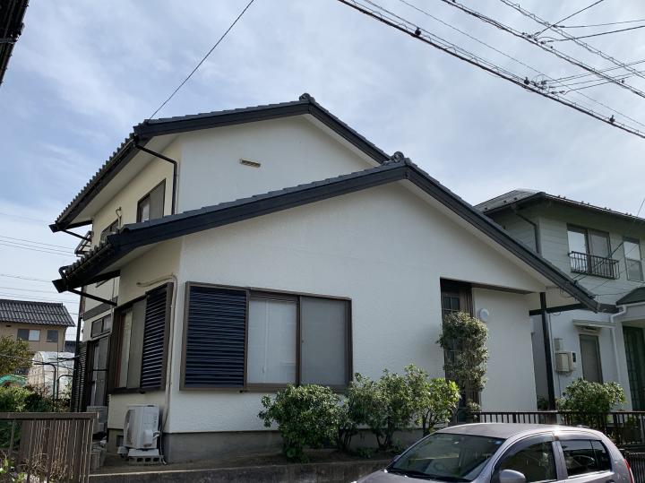 外観のお色は以前とあまり変わらない色をご希望。 今回はブロークンホワイトで施工させて頂きました