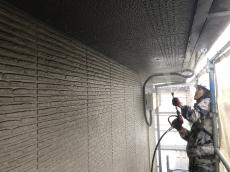 高圧洗浄で先ずは古い塗膜、コケ、カビを取り除いていきます。