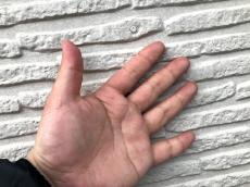 塗膜の劣化により塗料が粉状になるチョーキング現象が現れています。