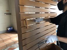 洗浄後、木部塗装。ガードラックアクア2回塗り