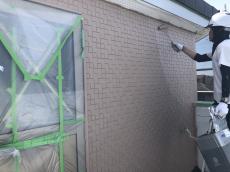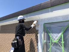 外壁下塗り作業。エポパワーシーラーを塗布していきます。