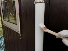 木部は木部洗浄。この作業をする事で、塗装の付きが良くなります。