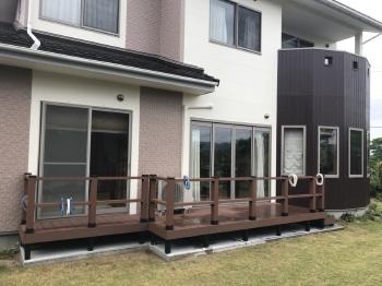 ウッドデッキ部分も綺麗に塗装され外壁との色合いとも良くあいます。