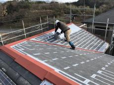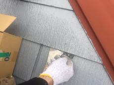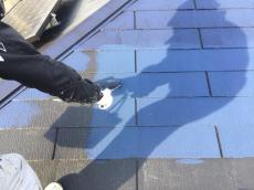 屋根下塗りです。細かいところは刷毛塗り、広い所はローラー塗装を行いました。