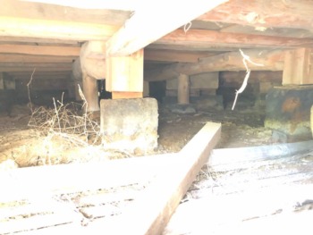 床下を点検すると石に束(木)が乗っている所と浮いている所がありました
