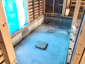 西棟北側は湿気が多かったので防湿コンクリート仕様に