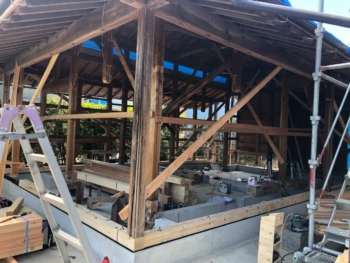 土台を施工後 構造を直していきます⇒現状の傾きを見ながら慎重に整えていきます