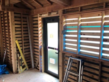 窓で囲まれていた外壁はベタ基礎新設と壁増&アルミ樹脂複合窓新設で耐震性断熱性省エネ性大幅向上です