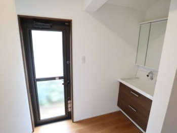 玄関ホールには900㎜幅の洗面化粧台を新設