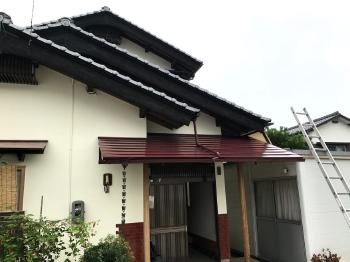 庇板金部分はケレン作業で錆を取り除き、錆止め材・上塗り材を塗布しました
